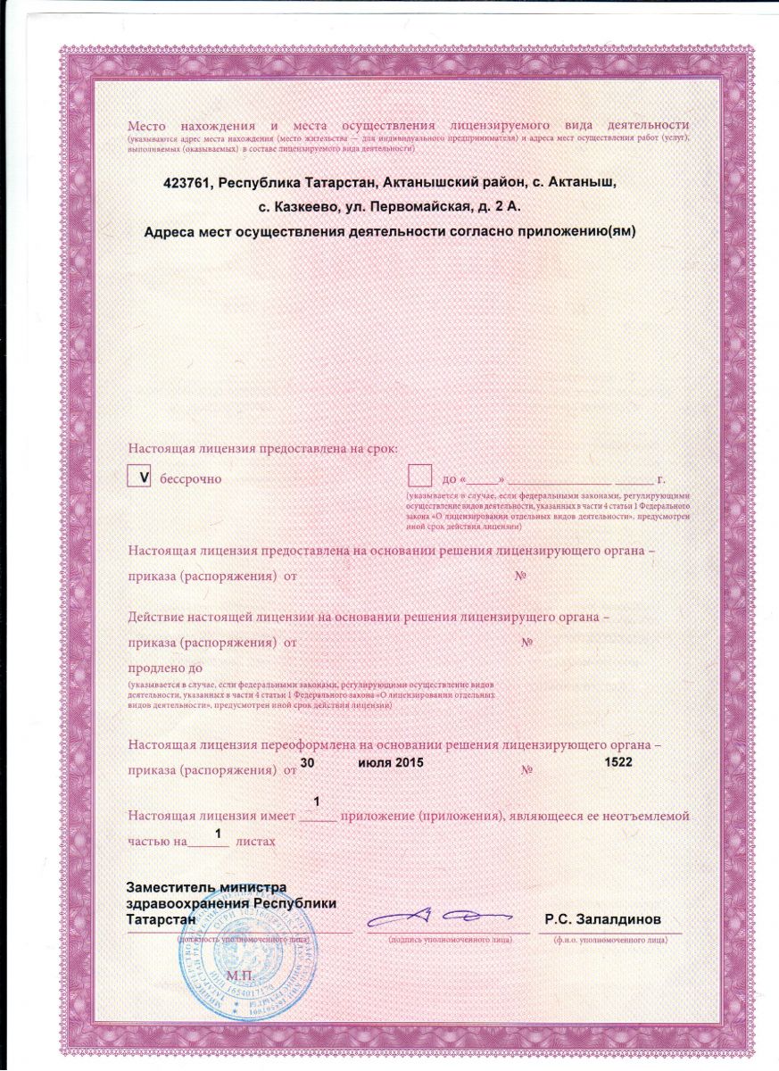 Лицензия на осуществление медицинской деятельности, 30.07.2015