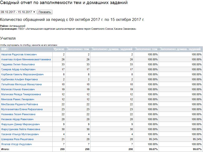 Сводный отчет по заполняемости тем и домашних заданий (09.10.2017-15.10.2017)