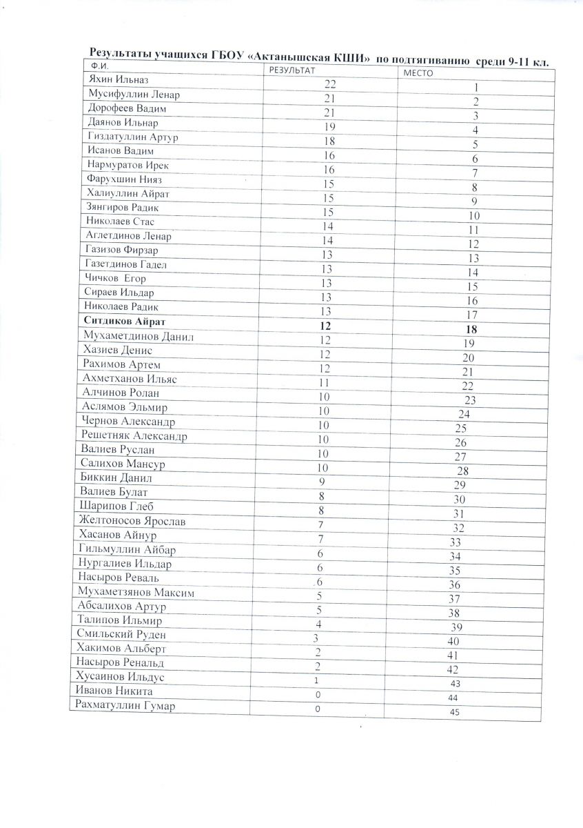 Результаты школьных соревнований по подтягиванию среди юношей 5-11 классов и подниманию туловища среди девушек 5-11 классов