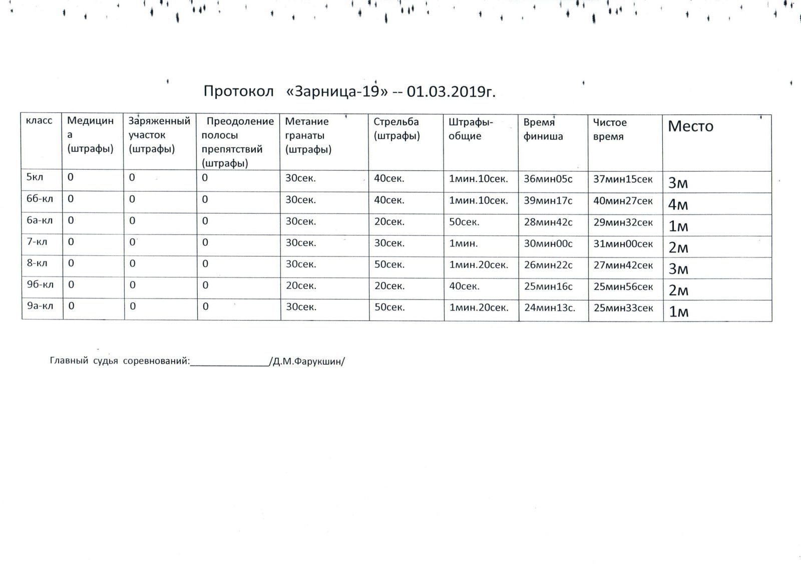 Опубликовано: 02.03.20191 марта на базе нашей школы прошёл школьный этап военно-спортивной игры "Зарница" с учащимися 5-11 классов. На время нужно было пройти несколько полос препятствий. А препятствия были не детские - здесь и метание гранаты в цель, разборка и сборка автомата, стрельба из автомата, оказание первой медицинской помощи с транспортировкой пострадавшего, одевание противогаза, "тропы разведчика" и "переправы".