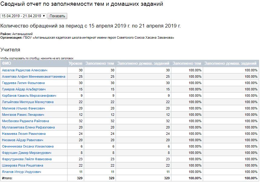 Сводный отчет по заполняемости тем и домашних заданий (15-21.04.2019)