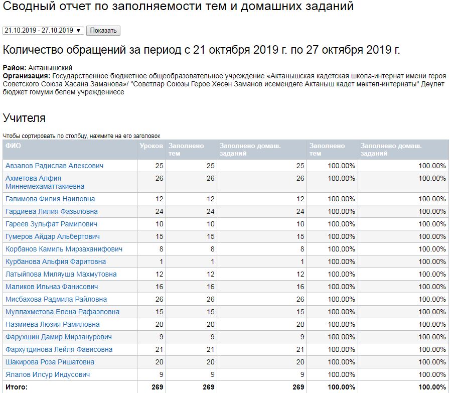Сводный отчет по заполняемости тем и домашних заданий (21-26.10.2019)