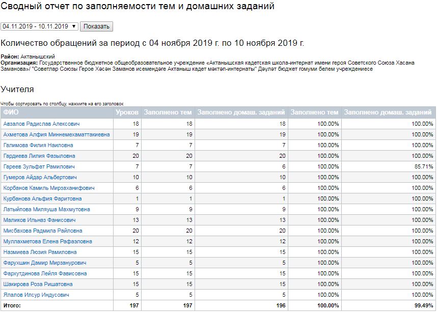 Сводный отчет по заполняемости тем и домашних заданий (06-09.11.2019)