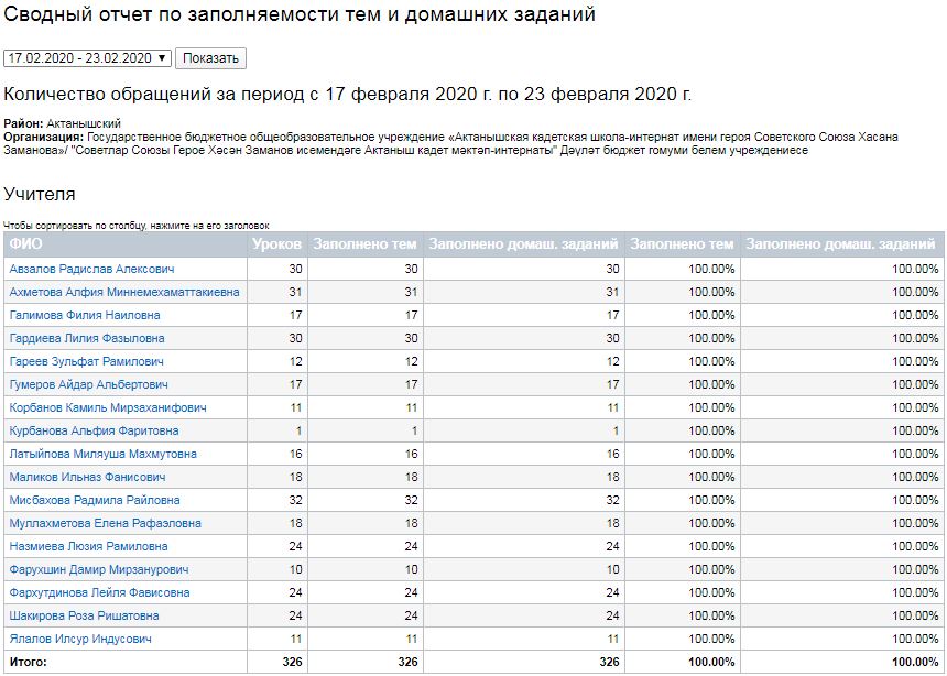 Сводный отчет по заполняемости тем и домашних заданий (17-21.02.2020)