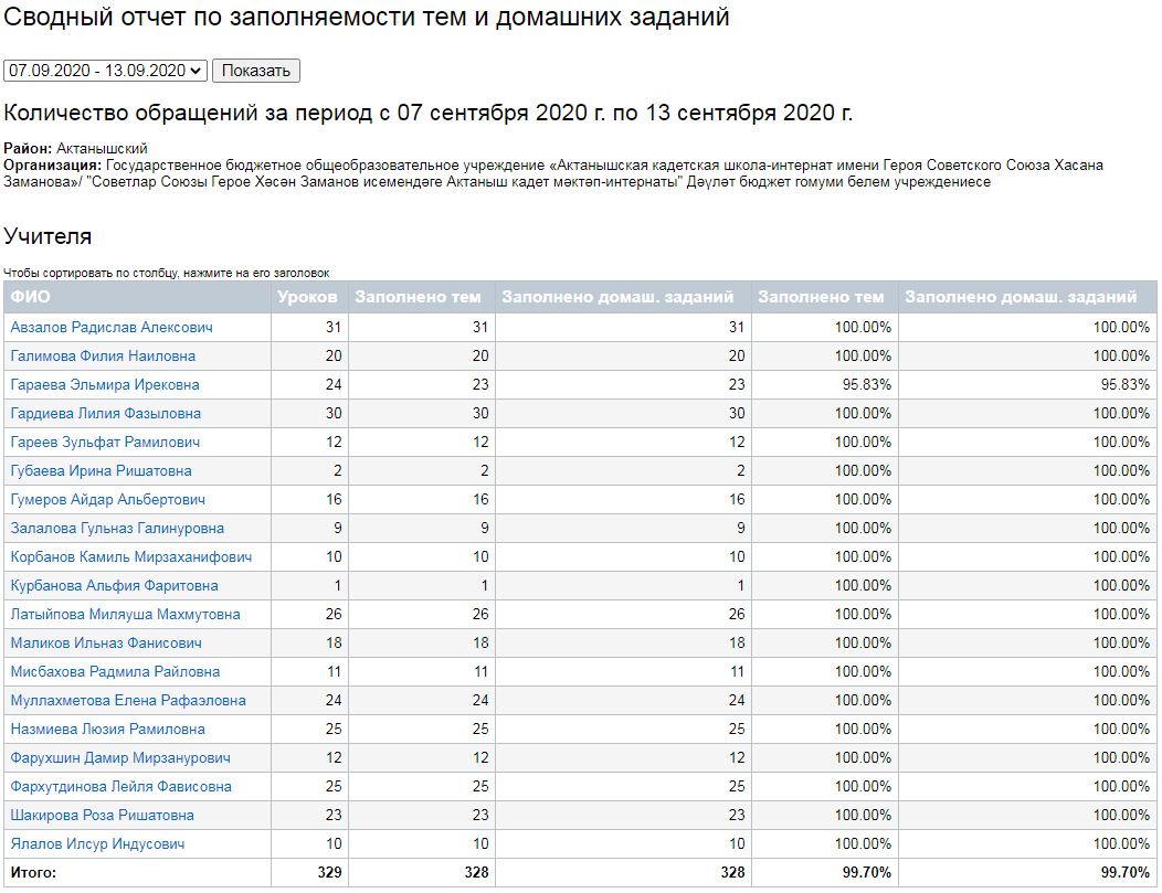 Сводный отчет по заполняемости тем и домашних заданий (07-11.09.2020)