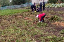 6 май көнне дәресләрдән соң 5-8 класс укучылары белән юл буендагы полосадагы агачларның сынган ботакларын чистарттык.