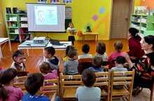 26 апрель көнне балалар бакчасында Бөек шагыйребез Габдулла Тукайның туган көненә багышланган чара булып узды. Ике төркемдә дә балалар белән Тукаебызның тормышы, иҗаты, язган шигырьләре,әкиятләре белән танышып,сөйләп уздык. Чара азагында Тукай иҗатыннан әкиятләр карадык./ 26 апреля в детском саду провели мероприятие посвященное ко дню рождения Г.Тукая. Ознакомились с жизнью, творчеством Тукая. Смотрели сказки по его произведениям.