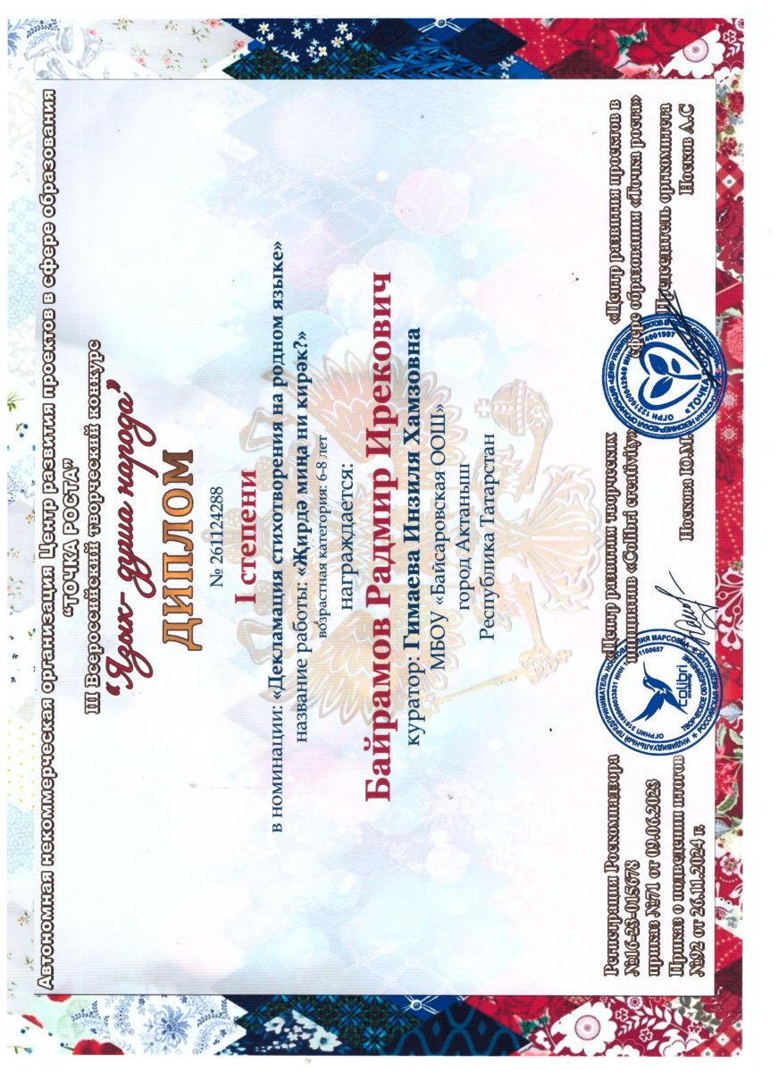Муниципальное бюджетное общеобразовательное учреждение «Байсаровская основная общеобразовательная школа имени Миргалима Гилемовича Басырова» Актанышского муниципального района Республики Татарстан/Татарстан Республикасы Актаныш муниципаль районы «Басыров Миргалим Гыйлем улы исемендәге Байсар төп гомуми белем бирү мәктәбе» муниципаль бюджет гомуми белем бирү учреждениесе»