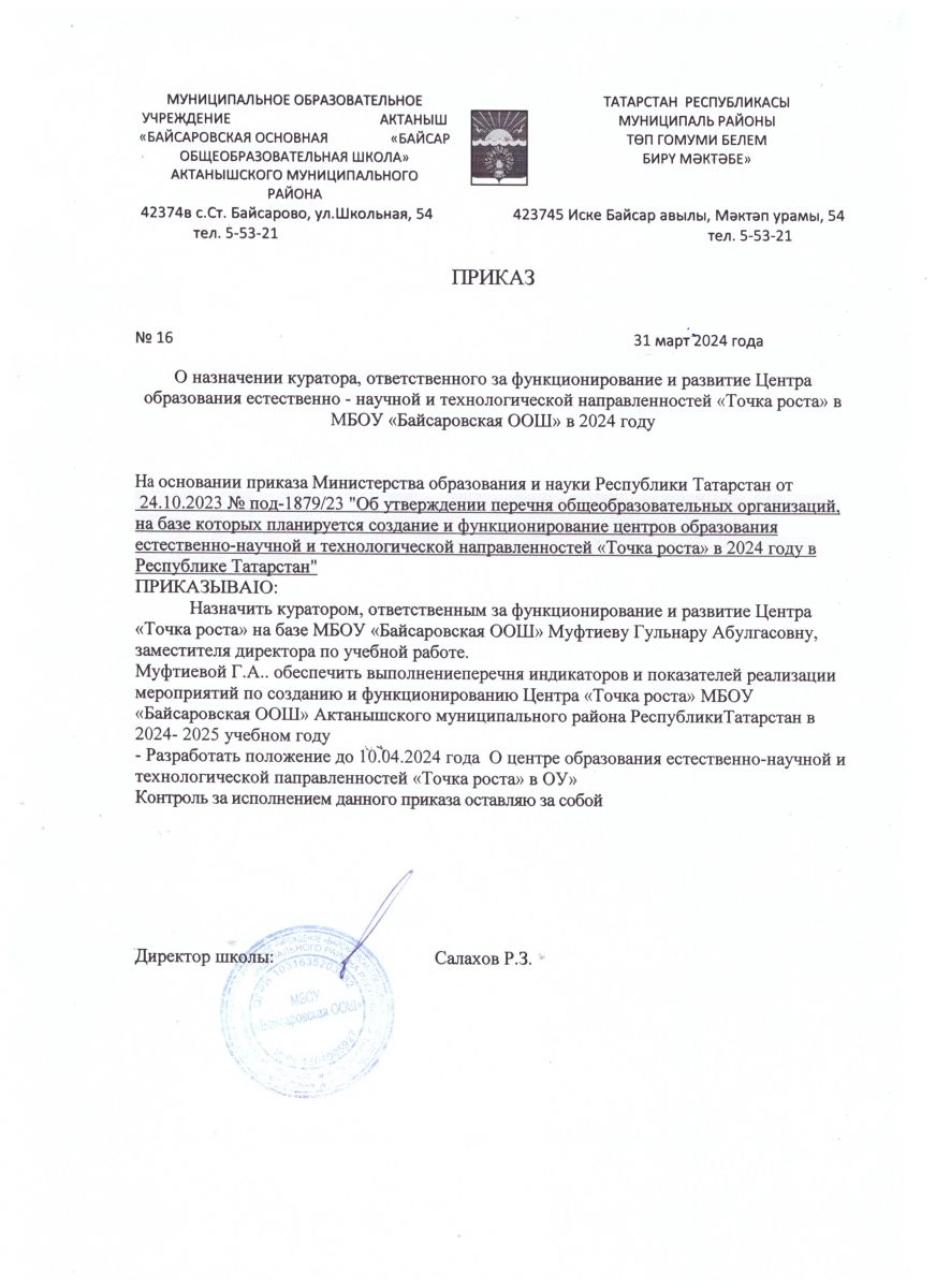Муниципальное бюджетное общеобразовательное учреждение «Байсаровская основная общеобразовательная школа имени Миргалима Гилемовича Басырова» Актанышского муниципального района Республики Татарстан/Татарстан Республикасы Актаныш муниципаль районы «Басыров Миргалим Гыйлем улы исемендәге Байсар төп гомуми белем бирү мәктәбе» муниципаль бюджет гомуми белем бирү учреждениесе»