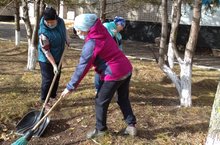 Бүген мәктәптә техник эшчеләр мәктәп территориясен җыештыру буенча өмәдә катнашалар.