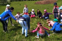 "Бәхетле балачак лагерына йөрүче балалар табигать кочагына чыктылар. Төрле кызыклы уеннар уйнадылар.