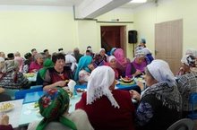 Өлкәннәр декадасына багышланган чаралар дәвам итә. Мәктәбебез ашханәсендә өлкәннәребез бәйрәм табыны артына жыелдылар. Бәйрәм уеннар, җыр-биюләр белән үрелеп барды.