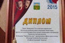 “ Бөек Җиңүнең 70 еллыгын каршылап” Актаныш районы авыл мәдәният йортлары драма коллективлары һәм халык театрлары смотрында уңышлы чыгыш ясап мәктәбебез укытучысы Салихов Илнар Шәйхенурович диплом белән бүләкләнде. Аңа киләчәктә дә иҗади уңышлар телибез.