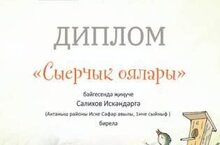 Ученик 1 класса Сафаровской средней школы Актанышского района Салихов Искандер победил в конкурсе “Скворечники“, организованном детской газетой “Көмеш кыңгырау”, и был награжден дипломом.