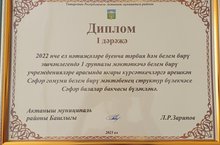 Балалар бакчабыз, 2022 нче ел нәтиҗәләре буенча һәм тәрбия бирү эшчәнлегендә 1 төркемле мәктәпкәчә белем бирү учреждениеләре арасында югары күрсәткечләргә ирешеп, беренче урын яулады һәм алдынгылар слетында диплом белән бүләкләнде.