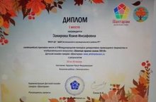 Дипломами первой степени награждены Закирова Язиля и Мифтахова Камиля, учащиеся 5 класса, за победу в V Международном конкурсе декоративно-прикладного творчества и ИЗО «Золотые краски осени 2019». Поздравляем девочек и их наставника, Р.Ф.Нуруллина с победой!