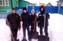 9 класс укучылары даими рәвештә өлкәннәргә булышып торалар. 23 нче январь көнне Илнар абыйлары җитәкчелегендә аръяк урамга чыгучы басманы һәм Муса Җәлил урамында яшәүче Әнүзә апаның капка төбен кардан чистартып, бозын ватып куйдылар.