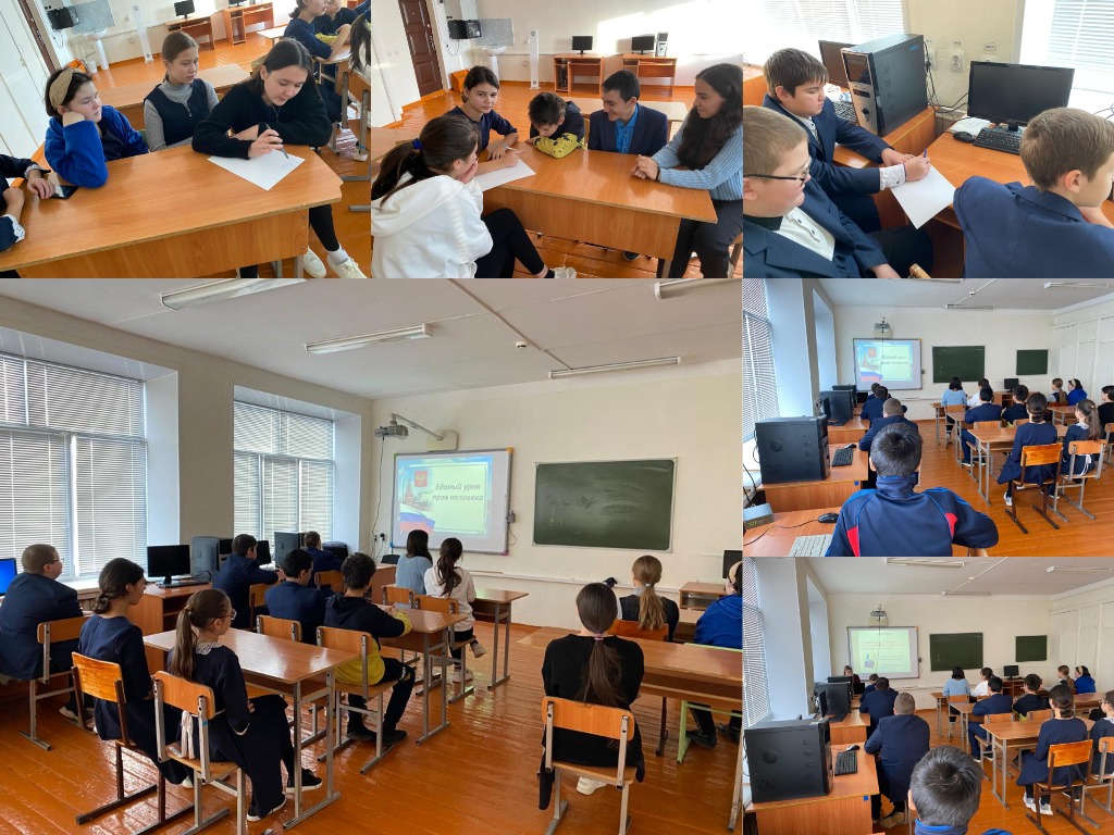 Бүген чираттагы "Мөһим әйберләр турында сөйләшү" класс сәгатьләре узды. Темасы "Рәсәй волонтерлары".