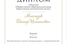 11 октябрьдә, илебезнең барлык регионнарында, "Бөтенроссия икътисадый диктант" бөтен Россия мәгариф кампаниясе онлайн форматта үтте. Икътисади диктантның темасы: "Көчле икътисад - алга киткән Россия!". Бөтен Россия икътисадый диктанты Халыкара Икътисадчылар Союзы катнашында Россиянең Ирекле Икътисадый җәмгыяте тарафыннан оештырылган. Икътисади диктантның төп максаты - икътисадый фәнгә кызыксыну уяту, хәзерге икътисадый көн тәртибе, көндәлек карарлар кабул итү өчен икътисади белемнең кирәклеген күрсәтү. Бу чарада безнең мәктәп укучылары һәм укытучылары актив катнаштылар.