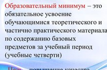 В целях достижения необходимого уровня освоения всеми обучающимися образовательного минимума, обеспечения высокого уровня обученности учащихся по основным предметам в школе идёт сдача образовательного минимума за 1 четверть 2021-2022 учебного года.