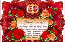 50 яшьлек алтын юбилее белән ихлас күңелдән кайнар котлыйбыз. Сиңа озын гомер, бәхет-шатлыклар, җан тынычлыгы, тән сихәте, саулык-сәламәтлек телибез. Кайгы-хәсрәт күрми, һаман шулай көчле рухлы һәм ярдәмчел, изге күңелле, балаларыңның игелеген күреп озак яшәргә насыйп булсын. Рәхмәтләргә һәм рәхәтләргә төренеп яшә.
