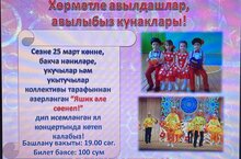 Хөрмәтле авылдашлар, авылыбыз кунаклары! Сезне 25 нче март көнне "Яшик әле сөенеп!" дип исемләнгән концертка көтеп калабыз! Рәхим итегез!