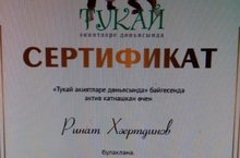 Республикакүләм "Тукай әкиятләре дөньясында" бәйгесендә актив катнашканнары өчен Хаертдинов Р,Хафизова Л., Ханов А.,Корбанов А.,Нургалиев А.,Гулящева В.сертификат алдылар.Җитәкчеләре: рус теле укытучысы Л.Ф.Галиева