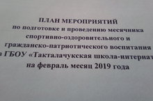 5 февраля состоялась торжественная линейка,посвященная открытию спортивно-оздоровительного и военно-патриотического воспитания в Такталачукской школе-интернат.Обучающиеся и педагоги были ознакомлены планом месячника.