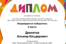 9класс укучылары "Бөек Ватан сугышы елларында совет халкының батырлыгы" темасына багышланган онлайн Олимпиадада катнаштылар.