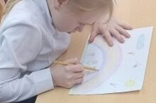 Безнең матур киләчәгебез якты хатирәләр белән генә күңел тәрәзәләрен бизәсен,дигән өметтә,2 группа укучылары " Мин тормышны яратам" рәсем бәйгесенә катнаша.