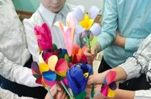 1 класс укучылары укытучы Ф.М.Габдуллина җитәкчелегендә әниләргә буләк открыткалары ясадылар.