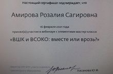 Участие на вебинаре 05.03.2021 Заместитель директора Амирова Р.С. участвовала на республиканском вебинаре с элементами мастер-класса "ВШК или ВСОКО вместе или врозь"