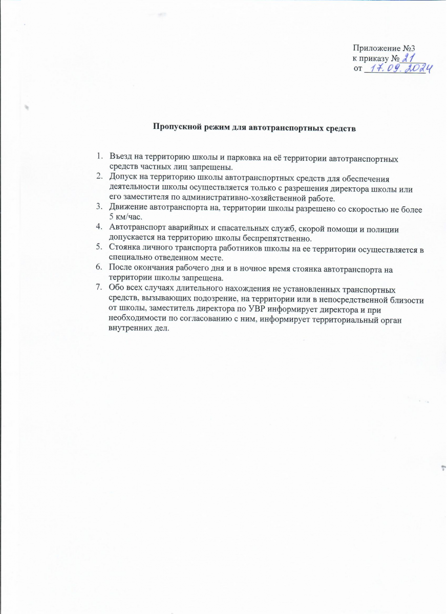 Приложение №3 к приказу №21 от 17_09_2024 г_ Пропускной режим для автоторанспортных средств.