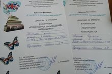 "Инглиз телендә җырлыйбыз һәм сөйлибез" бәйгесенә йомгак ясалып, дипломнар тапшырылды. 3 класс укучысы Мингазова Алинә "Шигырь" номинациясендә, 2 класс укучысы Гайсина Чулпан "Вокал-соло" номинациясендә III дәрәҗә дипломнар белән бүләкләнделәр. Җитәкчеләре Гайсина Л.Ф.