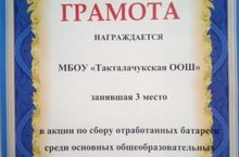 Кулланылган батарейкалар җыю акциясенең район этабында мәктәбебез өченче урында. Акциянең икенче этабы март аенда йомгаклана.