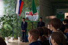 Новая учебная неделя в нашей школе традиционно началась с поднятия флага и исполнения гимна. Почетное право поднять Государственные флаги Российской Федерации и Республики Татарстан было предоставлено командиру взвода Гизетдинову Рузалю.