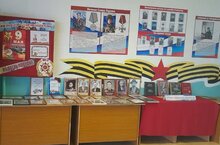 Безнең мәктәптә Бөек Ватан сугышында Җиңүнең 80 еллыгына багышланган күргәзмә булдырылды. Бу мөһим вакыйга яшь буынга илебез тарихын тирәнрәк аңларга һәм фашизмны җиңүнең бөеклеген аңларга ярдәм итәргә тиеш.Экспозициягә фронтовикларның фотосурәтләре, героик еллардагы вакыйгаларны чагылдырган рәсемнәр һәм кул эшләре куелды.