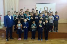 "Универсиада -2019" чарасы кысаларында, башлангыч сыйныф укучыларына мәгълүмат бирелеп, мәктәп директоры Хаҗиев А.С. тарафыннан истәлекле бүләкләр тапшырылды.