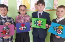 Дәрестән тыш эшчәнлек кысаларында, "Ветеранга открытка" акциясенә 4 нче класс укучылары кулдан ясалган бүләк-открыткалар әзерлиләр. Укытучы Шәемова З.Ф.