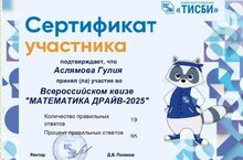 Укучылар ТИСБИ тарафыннан оештырылган Бөтенрәсәй "Математика драйв-2025" викторинасында катнаштылар. Укытучы Гыйльфанова А. М.