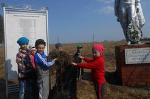 “Һәйкәлгә юл” акциясе 18.04.2016 16 нчы апрель көнне 2016 нчы елның “Язгы мәрхәмәтлелек атнасы” на старт бирелде. Мәктәбебезнең 2,4 класс укучылары (җитәкчесе – Мусина Г.М.)“Һәйкәлгә юл” акциясендә катнашып, авылыбыздагы Хәтер паркы территориясен чистарттылар.