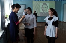 Бүген мәктәп коллективы Бөек Ватан сугышында җиңүнең 69 еллыгына багышланган митингта катнашты.