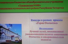 «Иң яхшы музей»(музей экспозициясе) конкурсы нәтиҗәләре /Об итогах конкурса «Лучший музей» (музейная экспозиция) 21.05.2021 Ватанны саклаучылар истәлеген мәңгеләштерүгә багышлап мәгариф оешмалары арасында Ватан Геройлары проекты кысаларында үткәрелгән «Иң яхшы музей» (музей экспозициясе) конкурсының муниципаль этабында мәктәбебез 1 нче урынга лаек булды. На муниципальном этапе конкурса «Лучший музей» (музейная экспозиция), проводимого в рамках проекта Героев Отечества среди образовательных организаций, посвященного увековечению памяти защитников Отечества, наша школа заняла 1 место.