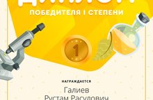 5 ноября На международном проекте "Videouroki.net" в олимпиаде по биологии ученик 6 класса Галиева Адиля Расуловна стала победителем и получил Диплом 1 степени. Учитель - Хабиров Газинур Анзяпович.Молодцы!/ 5нче ноябрьдә Халыкара " Vide-ouroki.net" проектының биология олимпиадасында 6нче класс укучысы Галиева Адиля Рәсүл кызы җиңүче булды һәм 1нче дәрәҗә диплом белән бүләкләнде. Укытучысы Хабиров Газинур Анзяпович. Әфарин!