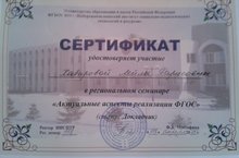 Сегодня на базе ФГБОУ ВПО "Набережночелнинский институт социально-педагогических технологий и ресурсов" состоялся региональный семинар по теме "Актуальные аспекты реализации ФГОС". Из нашей школы на семинаре участвовала учительница математики Хабирова Лейля Ф., выступила с докладом и получила сертификат.