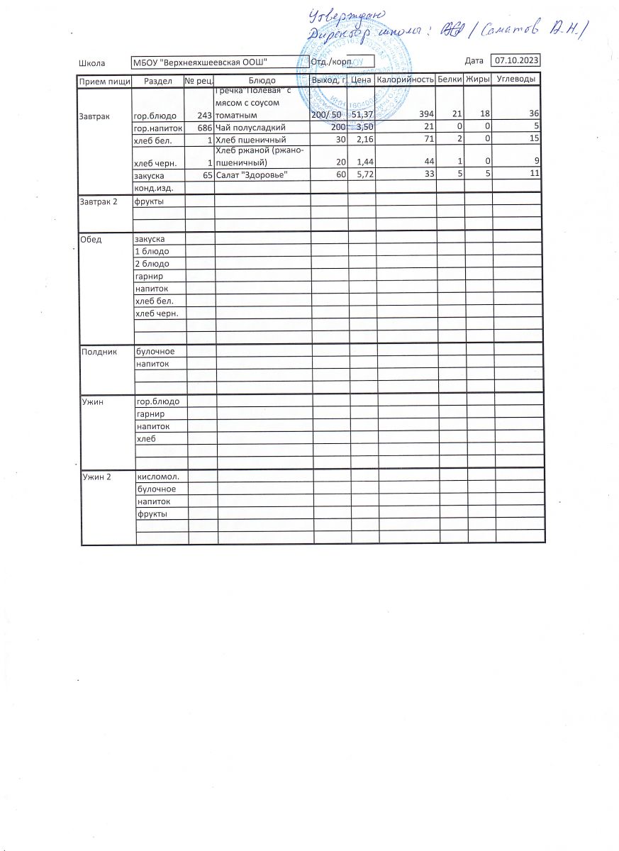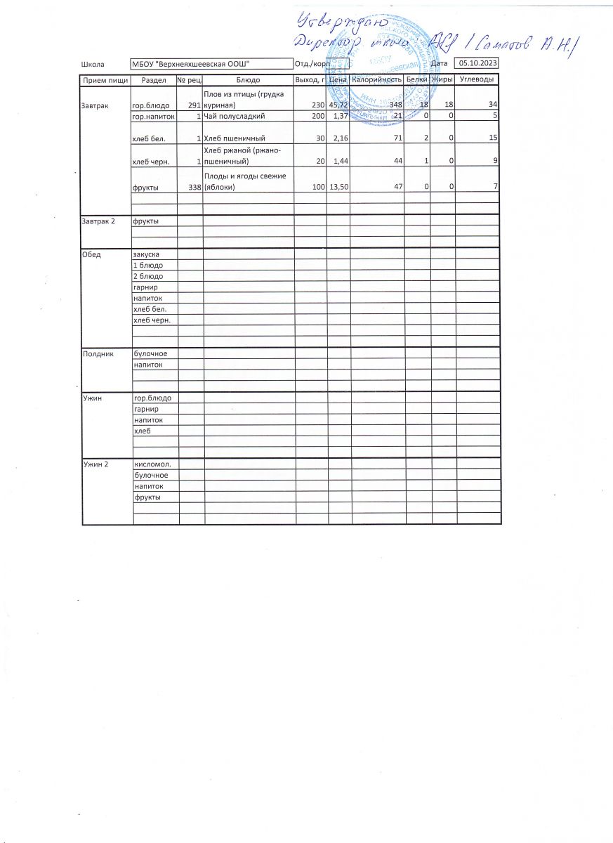 Однодневное меню на 05.10.2023 Однодневное меню на 06.10.2023 Однодневное меню на 07.10.2023