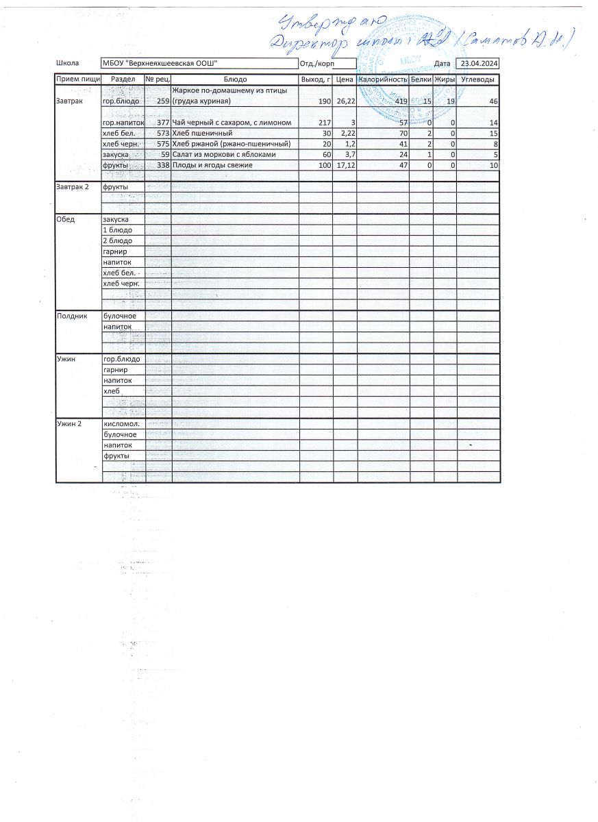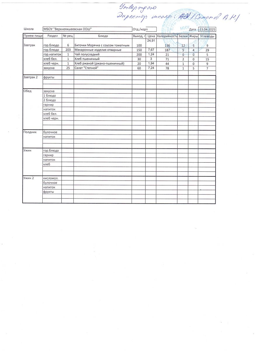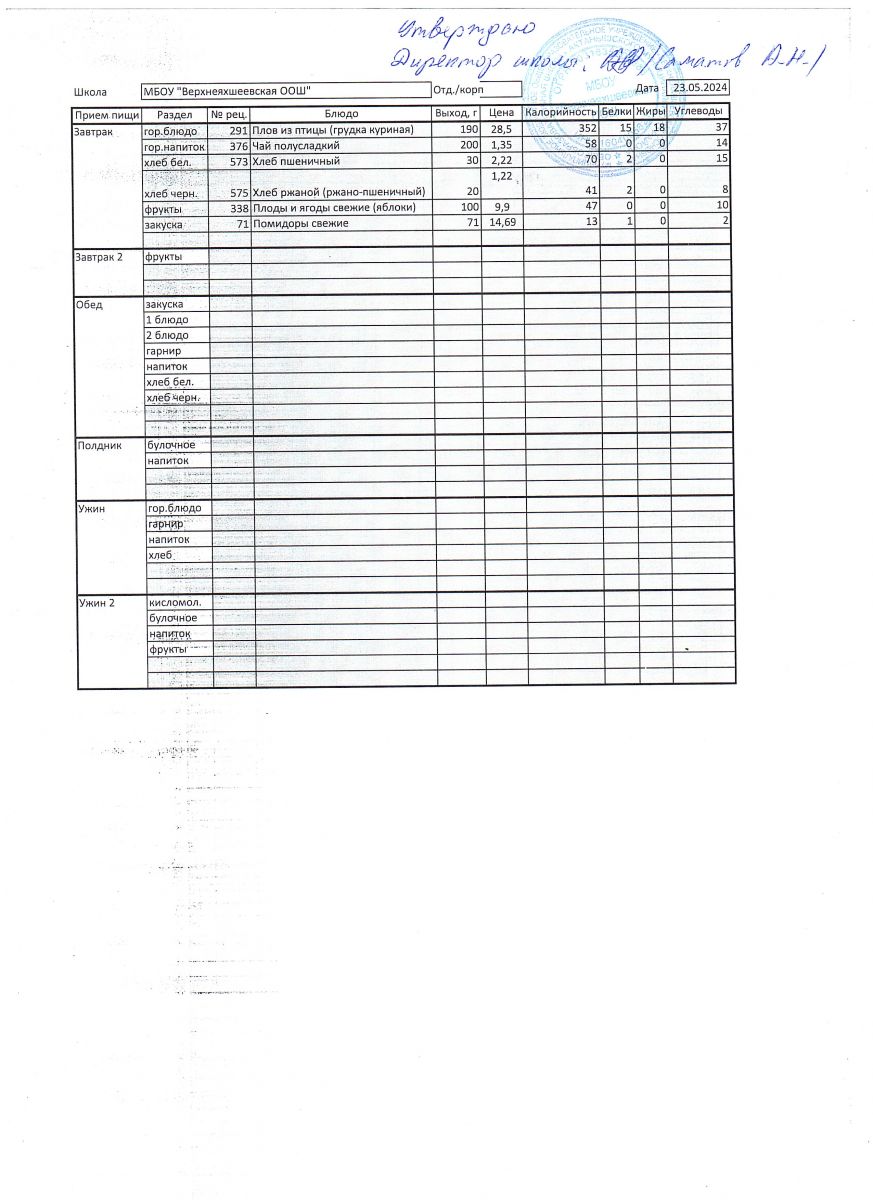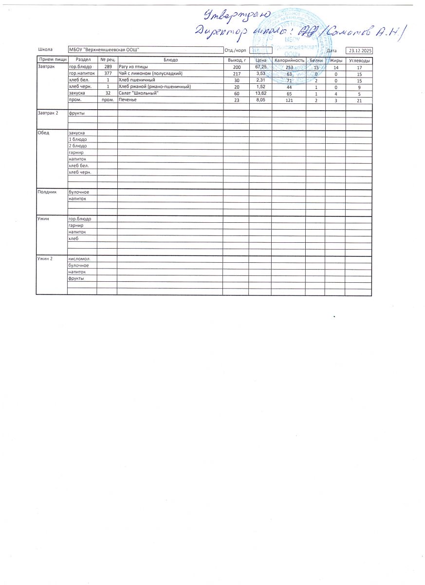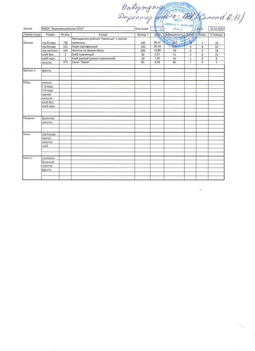 Однодневное меню на 23.10.2023 Однодневное меню на 24.10.2023 Однодневное меню на 25.10.2023