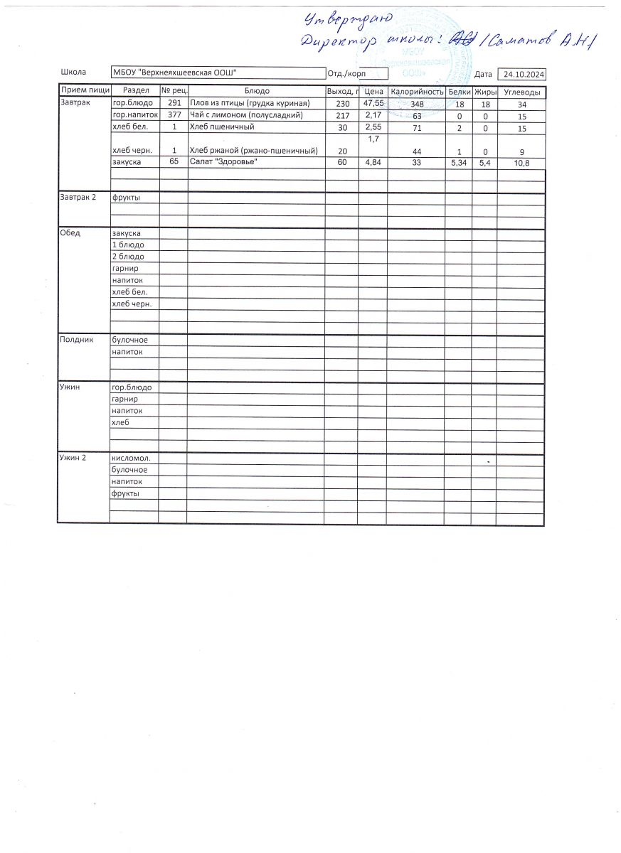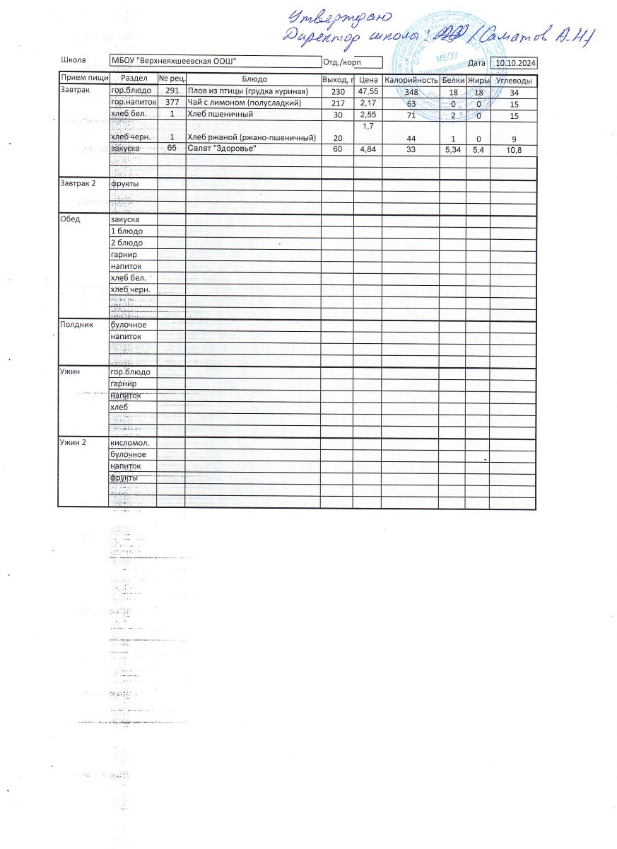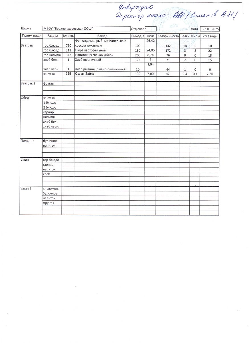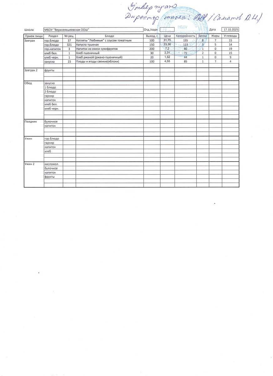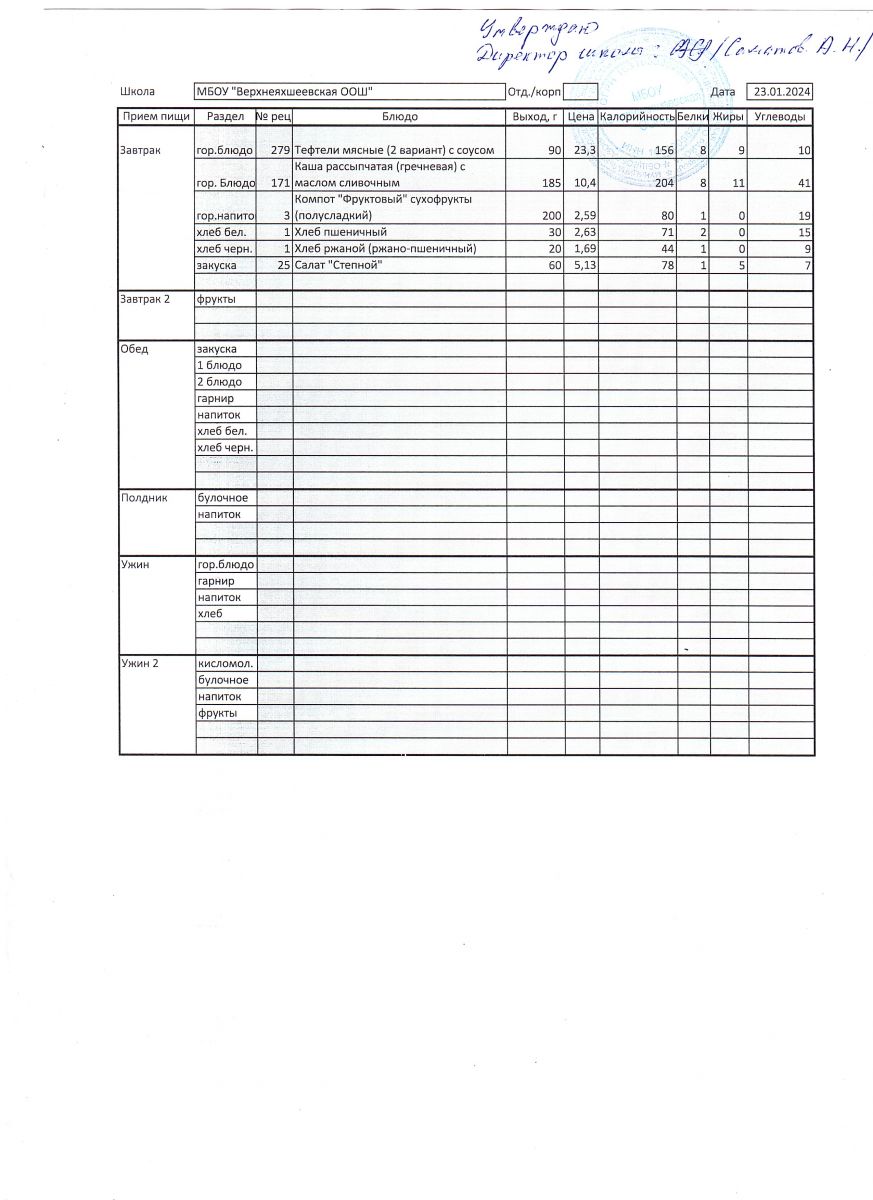 Однодневное меню на 23.10.2023 Однодневное меню на 24.10.2023 Однодневное меню на 25.10.2023