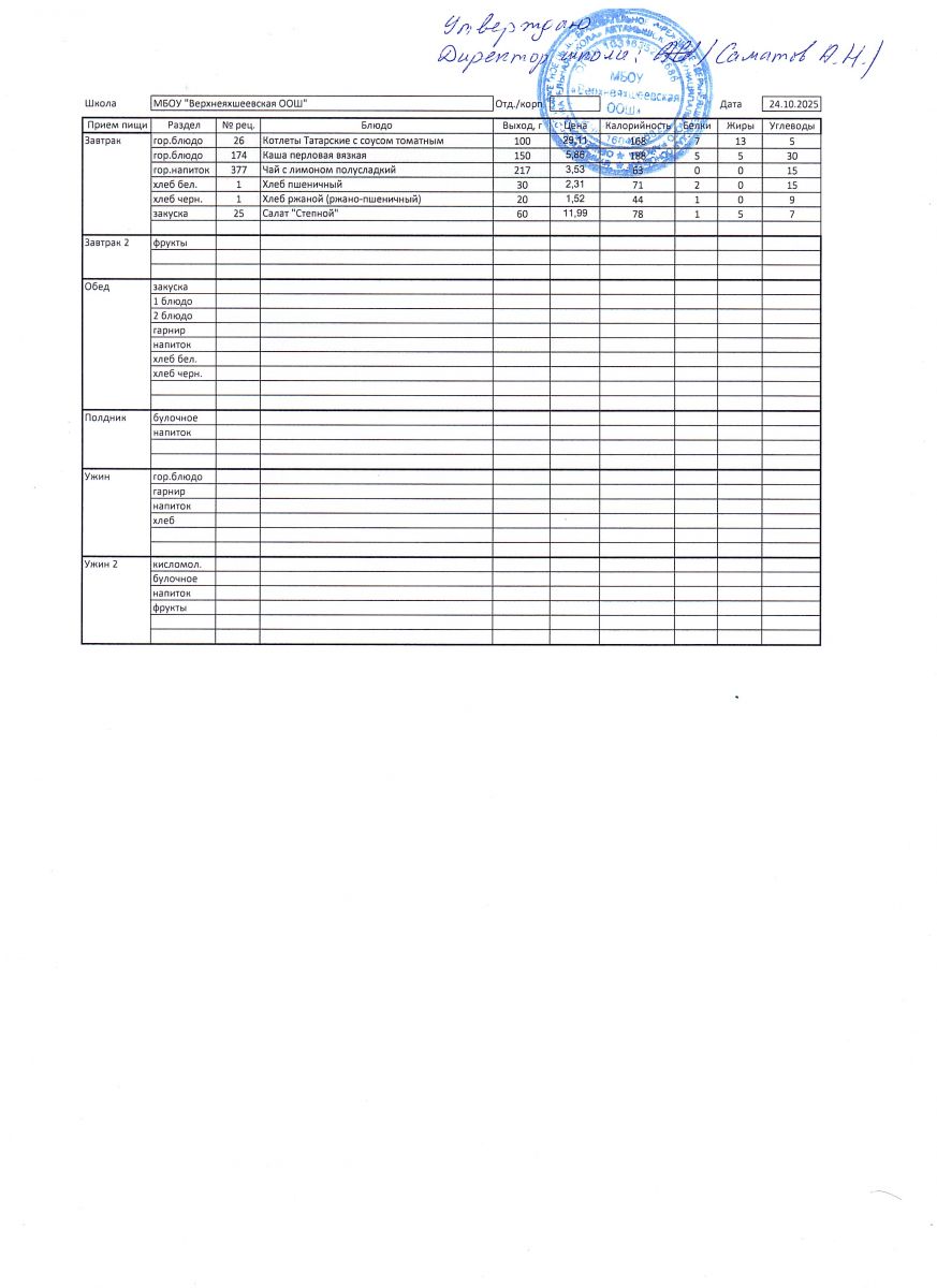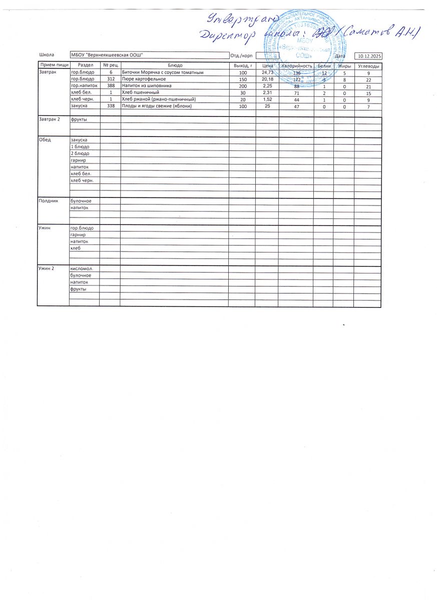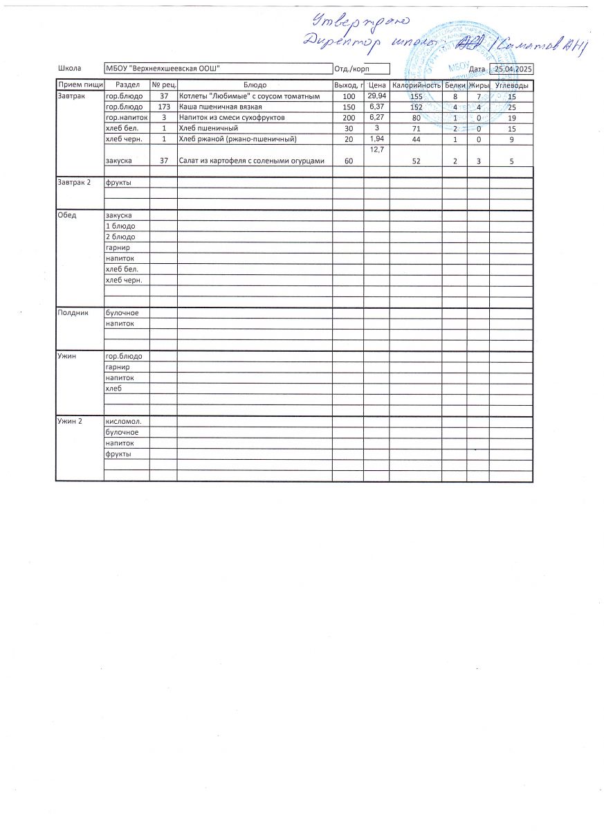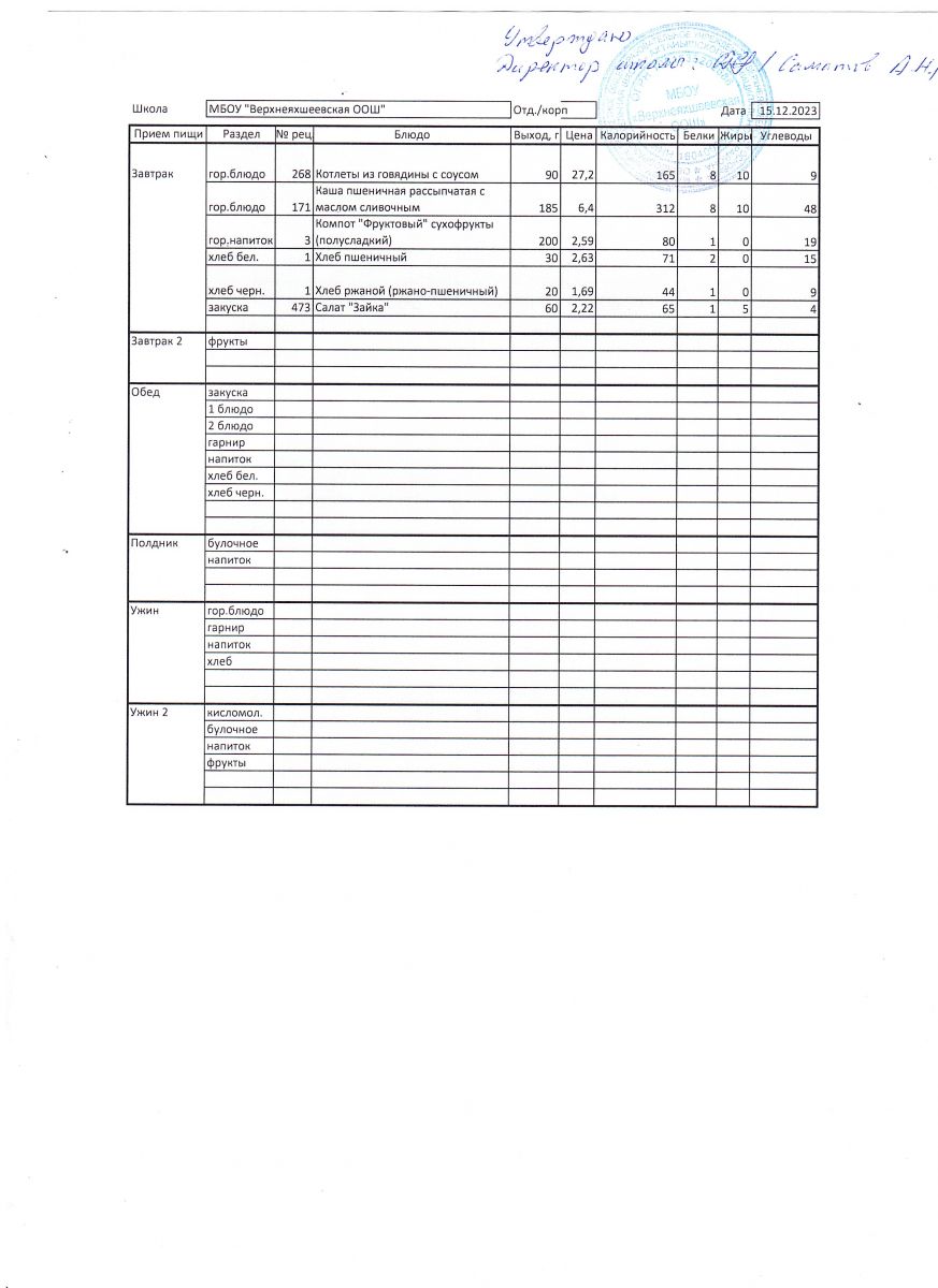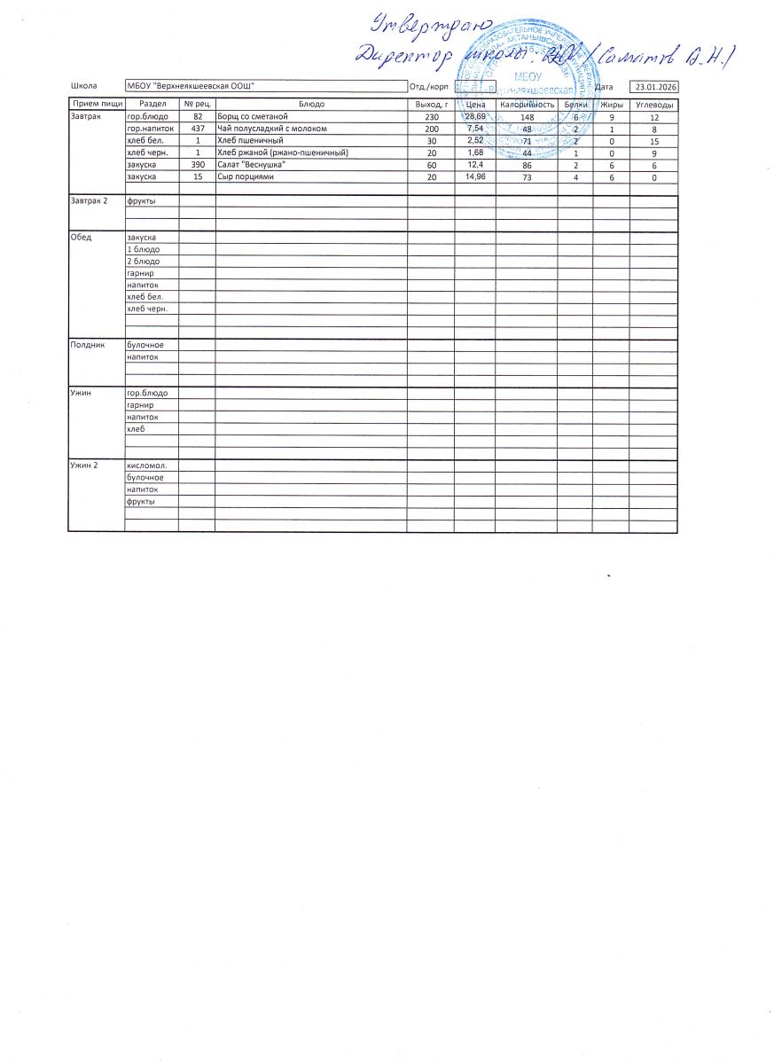 Однодневное меню на 23.10.2023 Однодневное меню на 24.10.2023 Однодневное меню на 25.10.2023