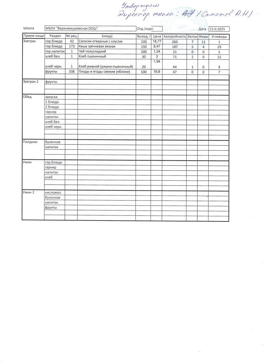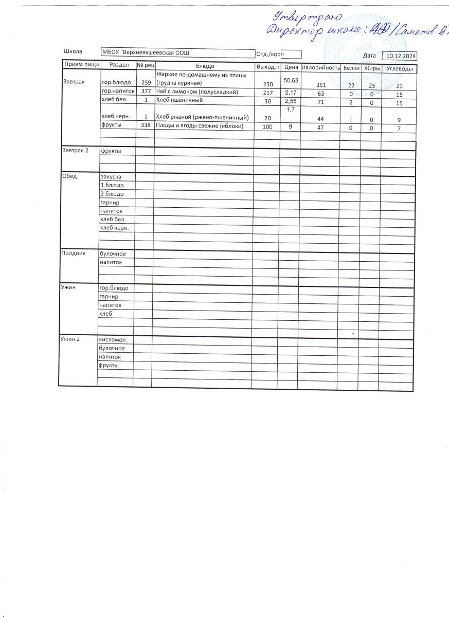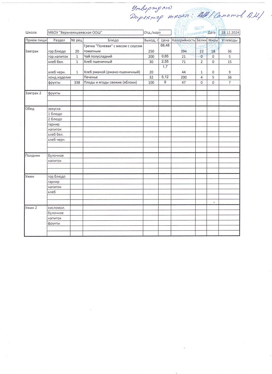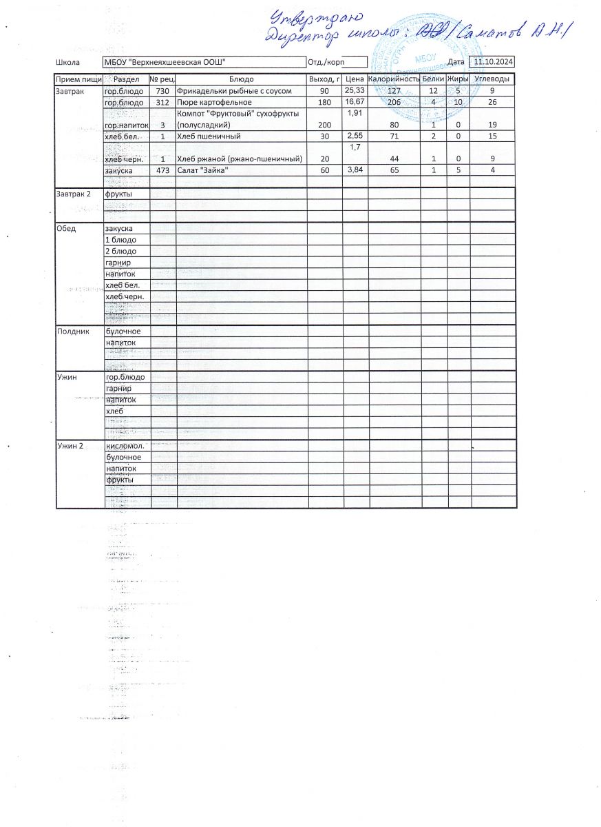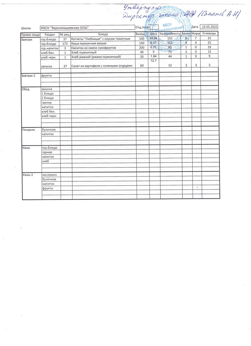 Однодневное меню на 23.10.2023 Однодневное меню на 24.10.2023 Однодневное меню на 25.10.2023